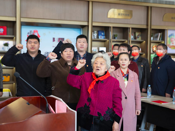 雨花軟件產(chǎn)業(yè)黨委組織黨員重溫入黨誓詞。軟件谷黨政辦公室供圖