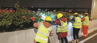 “結(jié)合常規(guī)巡查,新增加負(fù)責(zé)人、管理員、班組三級(jí)巡查模式,通過車巡看整體、人巡觀細(xì)節(jié),檢查市管高架綠化全域路線,分別做到每月、每半月、每兩天一次全覆蓋,對(duì)于高架主線和重點(diǎn)匝道做到每天巡查?!焙贾菔谐枪芫质姓行南嚓P(guān)負(fù)責(zé)人介紹,2022年的“高架花廊”巡查主要以綠化長勢、灌溉情況、病蟲害、排水設(shè)施滲漏等內(nèi)容為主,對(duì)隱患問題第一時(shí)間發(fā)現(xiàn),第一時(shí)間處理。