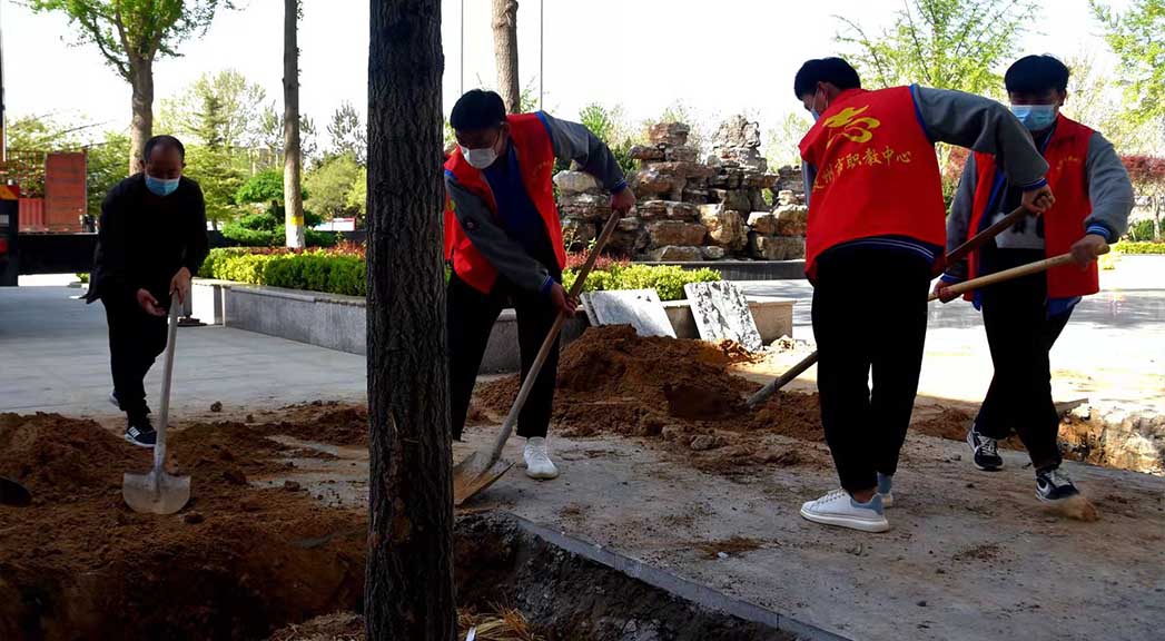 種樹就是種幸福,愛樹就是愛子孫。4月15日,市職教中心主教學(xué)樓前人頭攢動,學(xué)校黨總支書記么柱利、常務(wù)副校長劉紅芹與閆怡凡、陳柯安等10余名同學(xué)栽下一棵棵銀杏樹,共同收獲勞動的喜悅。