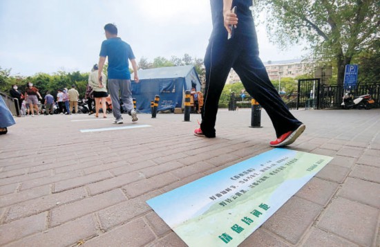 排隊本是件枯燥的事。昨天午后,在核酸采樣點,許多居民竟放下了手機(jī),饒有興致地讀起了腳下的古詩,還有家長順道給孩子講解這些詩。