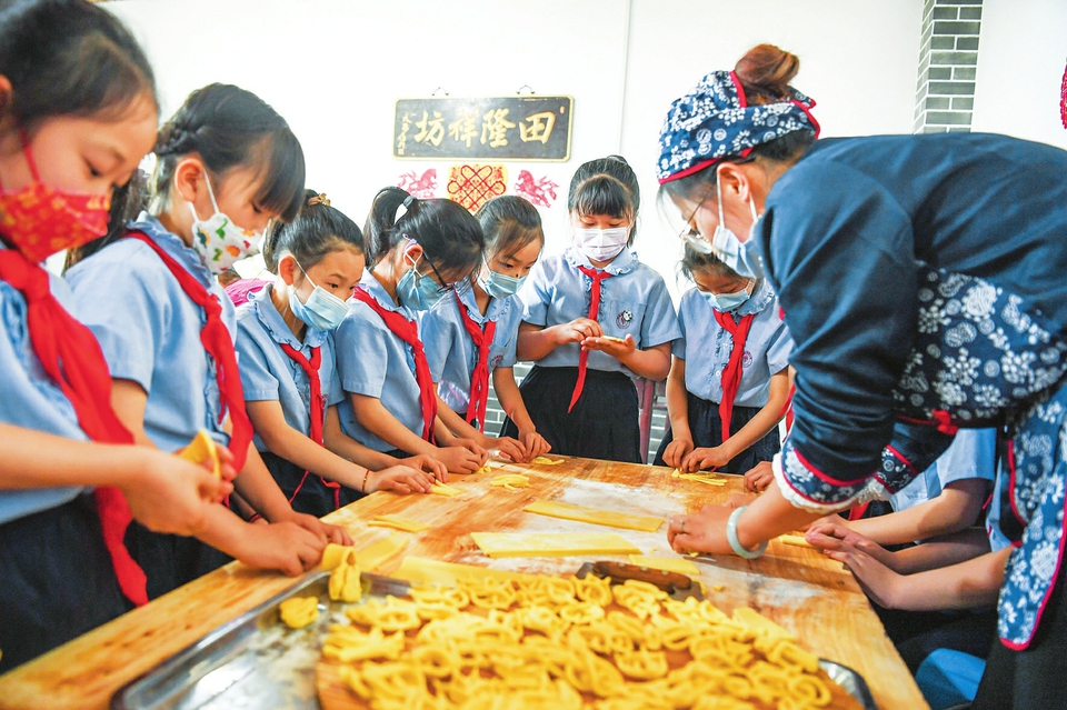 5月3日,平遙縣實(shí)驗(yàn)小學(xué)三年級463班的學(xué)生在平遙縣田隆祥油花花非遺傳學(xué)基地體驗(yàn)油花花、月餅等傳統(tǒng)食品的制作過程。“五一”期間,平遙縣實(shí)驗(yàn)小學(xué)在做好疫情防控的同時,組織學(xué)生就地開展多種形式的非遺文化項(xiàng)目傳學(xué)活動,讓孩子們近距離感受非遺文化的魅力,豐富假期生活。(梁生仁攝)