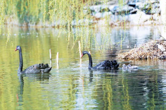 3月29日,圓明園九州景區(qū)后湖里,一對(duì)黑天鵝寶寶成功孵化,兩只小天鵝立即成為圓明園新寵,吸引了眾多攝影愛好者前來拍攝。黑天鵝一家在湖中時(shí)而靜靜游動(dòng),時(shí)而將頭扎進(jìn)水中覓食,映襯著一湖碧水和如煙的拂柳,構(gòu)成一幅絕美的自然畫面。湖邊還有一只黑天鵝正在孵蛋育雛,周邊放置的警戒線幫助黑天鵝安全育雛。游客們也只是遠(yuǎn)遠(yuǎn)地靜靜地看看,生怕驚擾了這“一家人”。