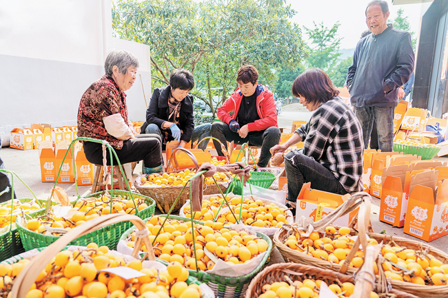 太平鄉(xiāng)是麗水蓮都區(qū)最大的水果種植鄉(xiāng)鎮(zhèn),有著“麗水枇杷第一鄉(xiāng)”的稱號,枇杷種植面積近4000畝,每年能為太平鄉(xiāng)帶來3200多萬元的產(chǎn)值。當?shù)亟ǔ闪巳珖讉€枇杷智能大棚、全國首個枇杷果樹“智能”補光技術(shù)研究基地。圖為太平鄉(xiāng)干部群眾幫助農(nóng)戶采摘、包裝枇杷,助力共同富裕。(程子齊)