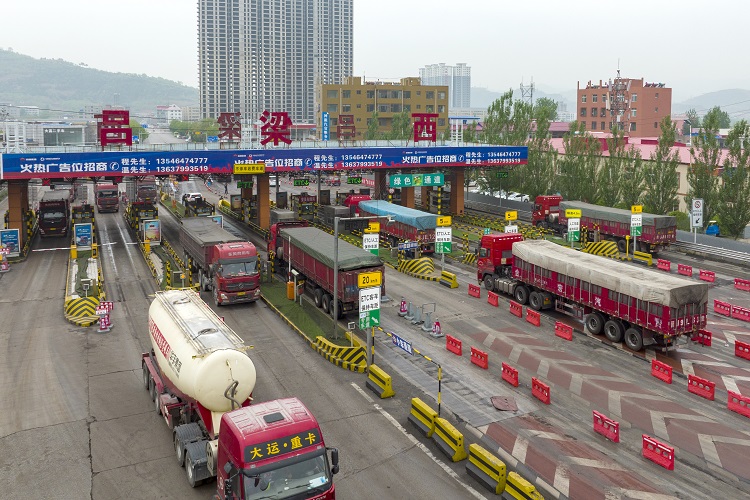 呂梁西高速口,貨運(yùn)車輛正在快速通行。劉亮亮 攝