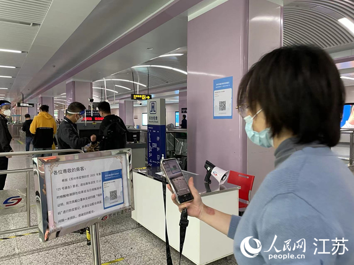 蘇州市民掃描場所碼進站。人民網(wǎng)記者 王繼亮攝