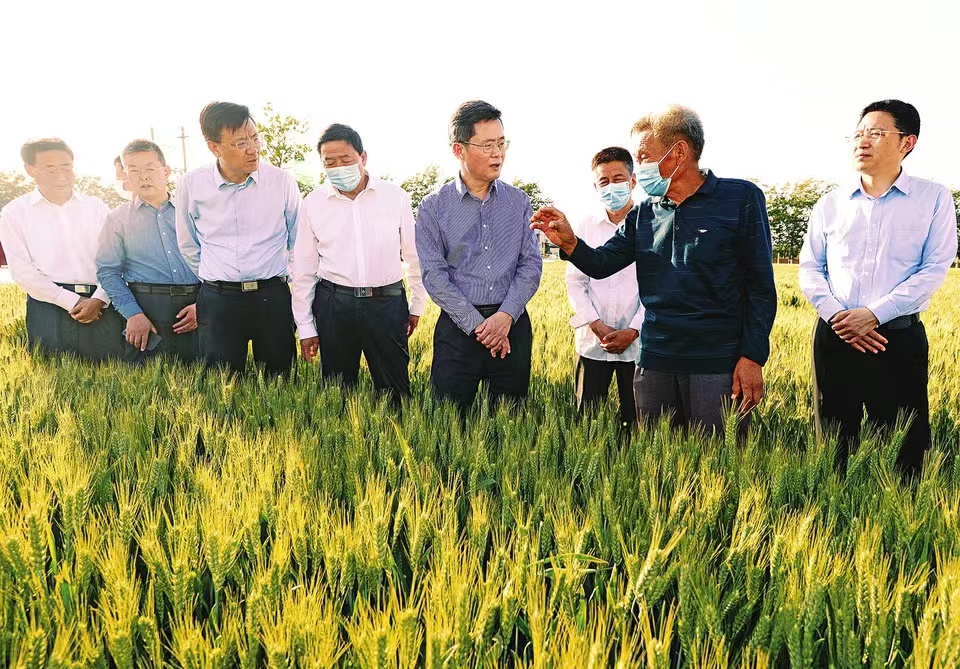 五月十七日,省委副書記、省長、省總河長藍(lán)佛安深入夏縣水頭村優(yōu)質(zhì)小麥生產(chǎn)基地,走進(jìn)田間察看麥苗長勢,與農(nóng)民、農(nóng)技專家交流,詳細(xì)了解麥種培育、小麥標(biāo)準(zhǔn)化種植及田間管理等情況。記者李兆民攝