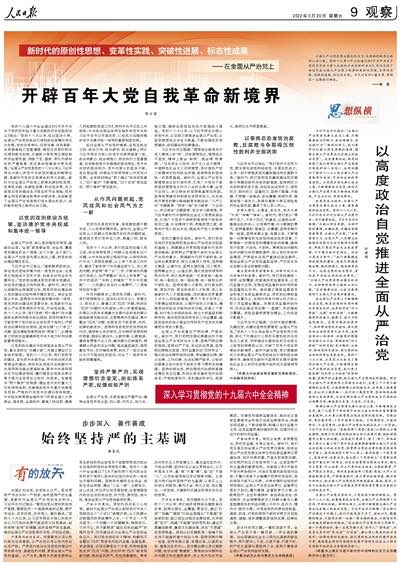 全面從嚴(yán)治黨是黨永葆生機(jī)活力、走好新的趕考之路的必由之路。黨的十九屆六中全會通過的《中共中央關(guān)于黨的百年奮斗重大成就和歷史經(jīng)驗的決議》,深刻總結(jié)了新時代在全面從嚴(yán)治黨上取得的原創(chuàng)性思想、變革性實踐、突破性進(jìn)展、標(biāo)志性成果。今天刊發(fā)的3篇文章,圍繞這一主題進(jìn)行闡述。