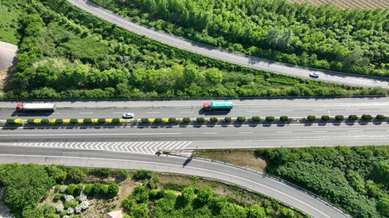 運輸進京物資的貨車正在高速公路上行駛。 河北省交通運輸廳供圖