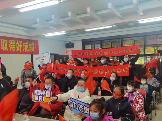 徐夢(mèng)桃參加的每一場(chǎng)北京冬奧會(huì)比賽,她的啟蒙教練、家鄉(xiāng)人民和小運(yùn)動(dòng)員們都在鞍山市軍事體育學(xué)院為她加油助威。胡婧怡攝