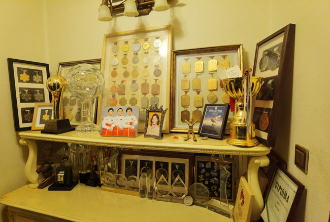 徐夢(mèng)桃家中擺滿了她的獎(jiǎng)牌。胡婧怡攝