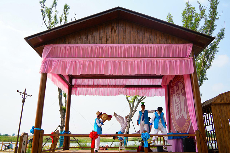 景區(qū)內(nèi)一處戲臺上正進(jìn)行表演。李歡攝