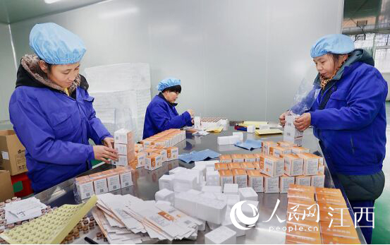 春節(jié)期間,贛江新區(qū)極尊堂中藥制藥有限公司內(nèi),工人們正在進(jìn)行產(chǎn)品裝箱。贛江新區(qū)供圖