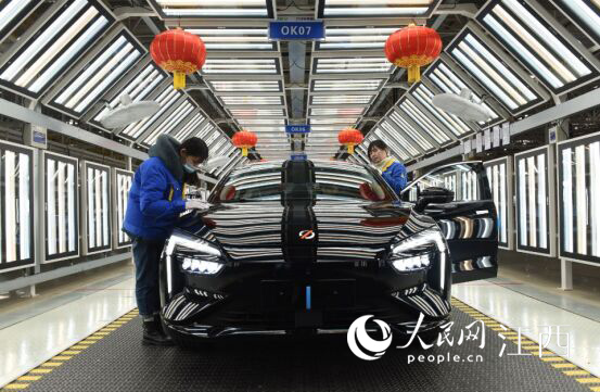 正月初一,年味正濃。而位于南昌經(jīng)開區(qū)的江鈴集團(tuán)新能源汽車公司工廠的生產(chǎn)車間內(nèi),工人在車輛前專注地忙碌著。