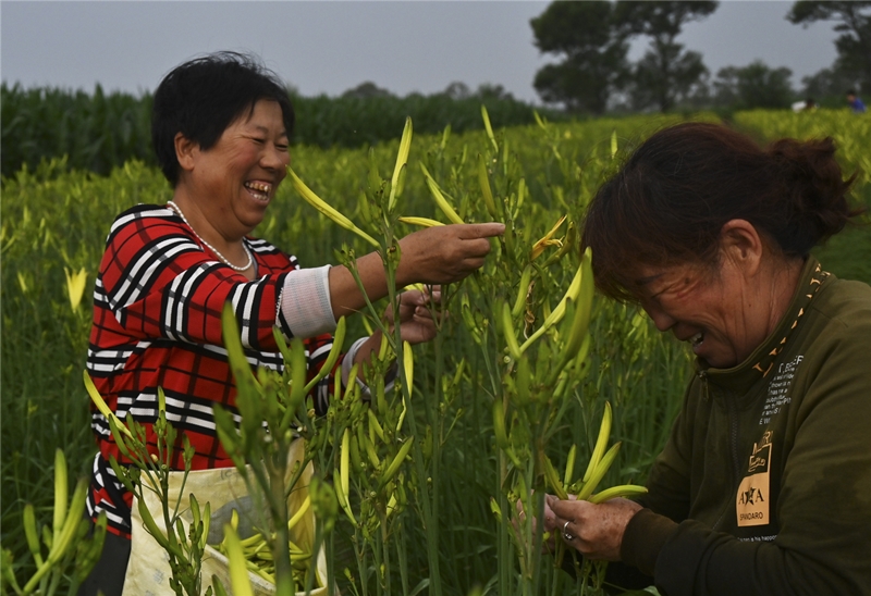 61歲的唐萬是唐家堡村第一批黃花菜種植戶。2020年,他將家中的30畝土地流轉給當?shù)睾献魃绶N植黃花?!耙郧白约悍N地的時候,一年下來收入有時還不到2000元。沒想到,30畝黃花地改變了我們一家的生活,現(xiàn)在每年都能有3萬多元的收入,好的時候甚至更多。”說起黃花帶來的好生活,唐萬臉上流露出喜悅。