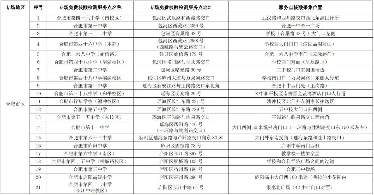 合肥將于6月5日開(kāi)展高考專場(chǎng)免費(fèi)核酸檢測(cè)