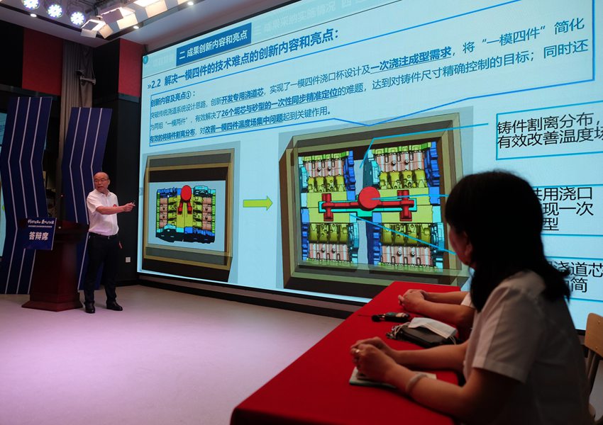 綠色生態(tài)座艙開發(fā)研究技術(shù)成果、變壓器套管換油裝置、高效率的一模四件發(fā)動機缸體毛坯關(guān)鍵技術(shù)研究及成果轉(zhuǎn)化應(yīng)用、新能源退役動力電池在SGMW制造系統(tǒng)梯次利用項目、重卷機組關(guān)鍵設(shè)備減時操作法……參加決賽的項目成果完成人采用PPT講解和現(xiàn)場答辯相結(jié)合的形式進行對決。項目答辯人就項目立項背景、成果創(chuàng)新內(nèi)容和亮點、成果采納實施情況、經(jīng)濟效益、社會效益、獲獎情況等進行了介紹,并圍繞創(chuàng)新成果的創(chuàng)新性、原創(chuàng)性、成果應(yīng)用成熟性、質(zhì)量可靠性、成果的先進程度、成果技術(shù)水平和難易程度、成果提高勞動生產(chǎn)效率作用、經(jīng)濟效益、社會效益、成果的適用范圍和推廣前景等方面回答評委的提問。