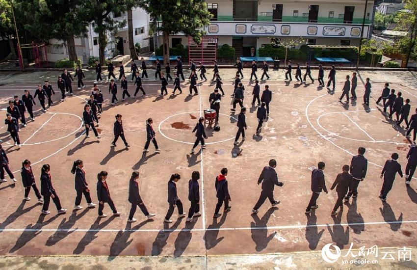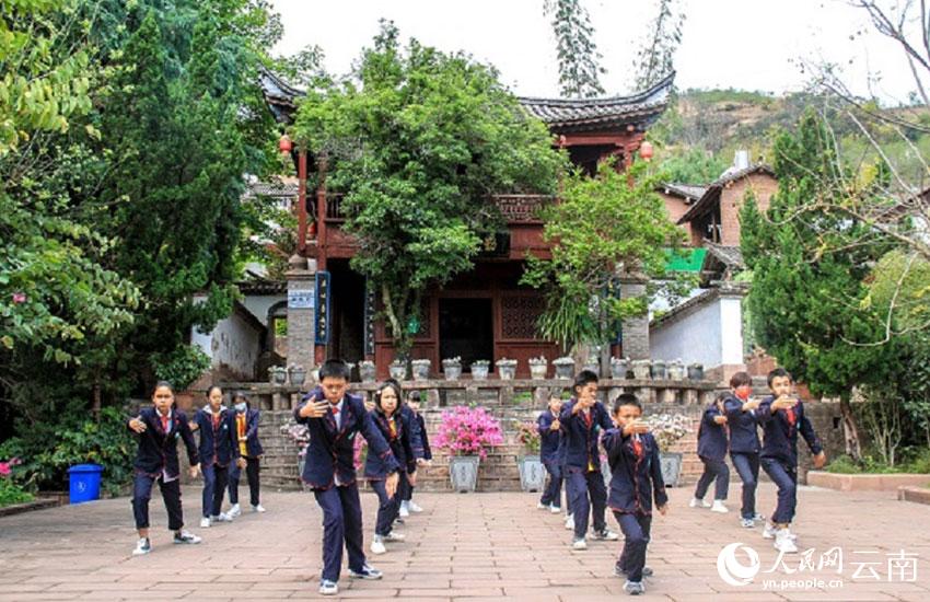 在云南省大理州云龍縣寶豐鄉(xiāng),穿過一條青石鋪就的古樸街道,走進(jìn)青瓦白墻的寶豐中心完全小學(xué)校門,便聽見一聲聲鏗鏘有力的鼓點。