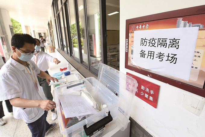 南京市中華中學(xué)考點(diǎn)備齊防疫物資,保障平安高考。 本報(bào)記者 萬(wàn)程鵬 攝