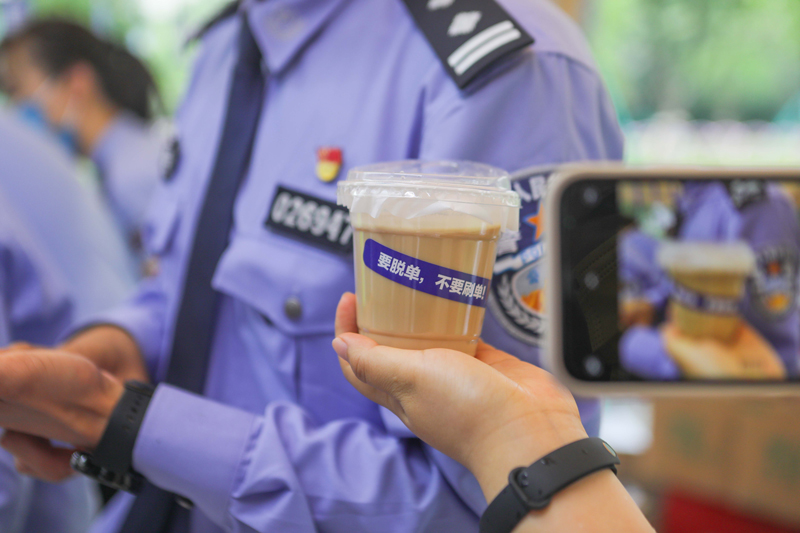 防詐騙宣傳咖啡。江北公安分局供圖