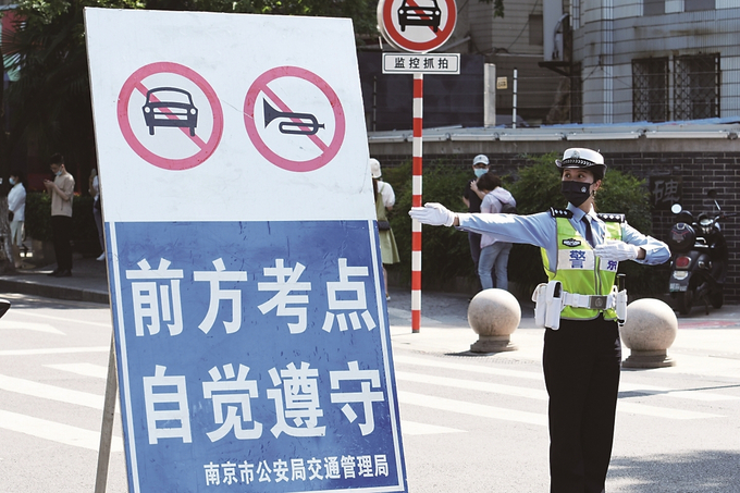 “今年考生家長大多選擇地鐵、公交等公共交通工具到達考點,周邊居民和在附近上班的人員也都能理解配合,高考現(xiàn)場環(huán)境一年比一年好。”南京交警一大隊執(zhí)勤二中隊中隊長錢臣表示??键c現(xiàn)場,交警也對非機動車駕駛?cè)藛T進行友情提醒,請他們不要按喇叭。在南京市第一中學考點,南京交警三大隊副大隊長桂子振告訴記者,“下午1點,我們就在考點周邊路口安排3名民警巡邏?!痹诟骺键c周邊道路,交警均擺放了疏導車輛的交通標志,并實時為考生提供幫助。