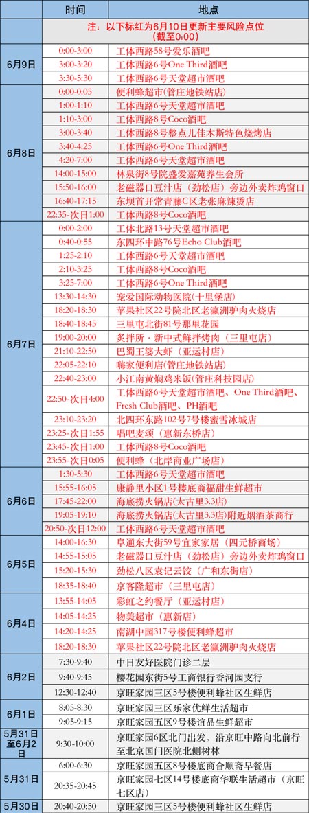 6月10日更新 北京朝陽(yáng)區(qū)主要風(fēng)險(xiǎn)點(diǎn)位公布