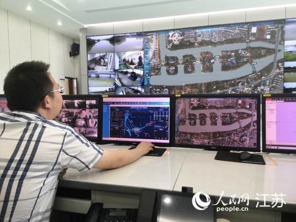 “我們現(xiàn)在觀察的是江都東閘引水情況、寶應(yīng)泵站機組運行情況?!痹诮妓麡屑~南水北調(diào)江蘇集中控制中心,屏顯數(shù)字不時跳動變化,反饋著調(diào)水情況。據(jù)中心負責(zé)人介紹,這是南水北調(diào)江蘇智能調(diào)度系統(tǒng),通過運用云計算、大數(shù)據(jù)、物聯(lián)網(wǎng)等現(xiàn)代信息技術(shù),建立動態(tài)監(jiān)測網(wǎng)絡(luò),不斷提高水量優(yōu)化調(diào)度、遠程集中控制、智能管理決策、應(yīng)急響應(yīng)處置等水平?!爸骺刂婆_布置16臺工作站,可對江蘇境內(nèi)南水北調(diào)新建工程的14座泵站、62臺主機組實時監(jiān)控。”