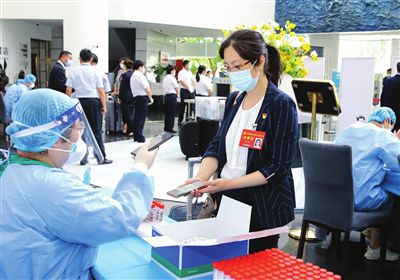 因新冠疫情防控需要,此次黨代會實(shí)行全程閉環(huán)管理?!罢埬葴y一下體溫。”工作人員熱情地引導(dǎo)著。代表們佩戴口罩,保持間距,有序完成測溫、驗(yàn)碼、安檢、流調(diào)、核酸檢測,隨后全身心投入到參會各項(xiàng)準(zhǔn)備工作。