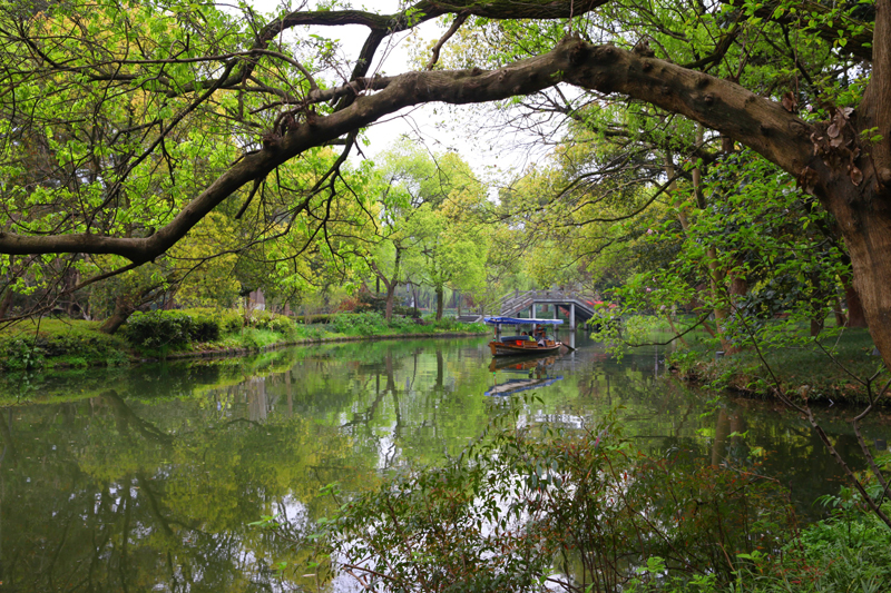 楊公堤東西兩側(cè)幽靜,野景富有層次,沿途草木蔥蘢,可謂“目遇之而成色”,人行景移,步移景換。