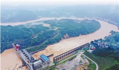 18日,廣西柳州市融水苗族自治縣出現(xiàn)持續(xù)強(qiáng)降雨過程,落久水利樞紐開閘泄洪。