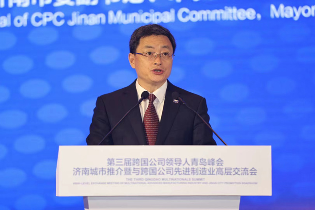 人民網青島6月20日電 6月20日上午,第三屆跨國公司領導人青島峰會舉辦期間,濟南市舉辦城市推介暨與跨國公司先進制造業(yè)高層交流會。近100家世界500強、跨國公司、知名企業(yè)、商協會機構及駐濟重點企業(yè)的150余名嘉賓齊聚一堂,共商合作,共謀發(fā)展。山東省委常委、市委書記劉強出席,市委副書記、市長于海田出席并致辭。