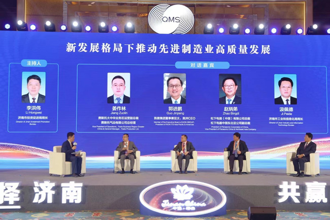 在對話交流階段,費斯托大中華業(yè)務區(qū)運營副總裁姜作林,凱傲集團董事兼亞太、美洲CEO郭進鵬,松下電器中國東北亞公司副總裁趙炳弟,濟南市工業(yè)和信息化局局長汲佩德、濟南市投資促進局局長李洪偉等,圍繞“新發(fā)展格局下推動先進制造業(yè)高質量發(fā)展”展開了對話交流。