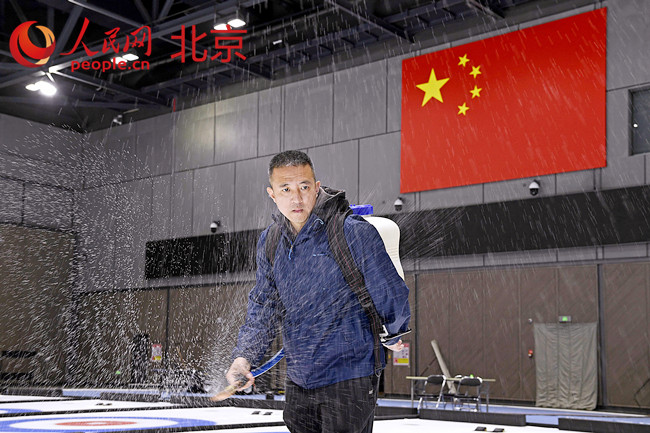 冬奧賽事保障期間,劉博強(qiáng)進(jìn)入“冰立方”,協(xié)助外籍制冰師負(fù)責(zé)冬奧會冰壺比賽場地從初凍冰、修冰到賽后維護(hù)的相關(guān)工作。劉博強(qiáng)非常珍惜服務(wù)冬奧會的機(jī)會,他背上筆記本電腦,腰包里塞滿了測溫槍、溫濕度儀、水質(zhì)測量儀、秒表等“老伙計”,做足了準(zhǔn)備。
