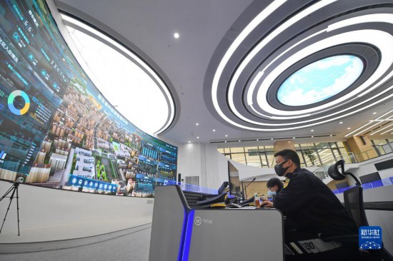 工作人員在雄安新區(qū)容東城市運營管理中心監(jiān)管平臺工作(2022年3月29日攝)。新華社記者 朱旭東 攝