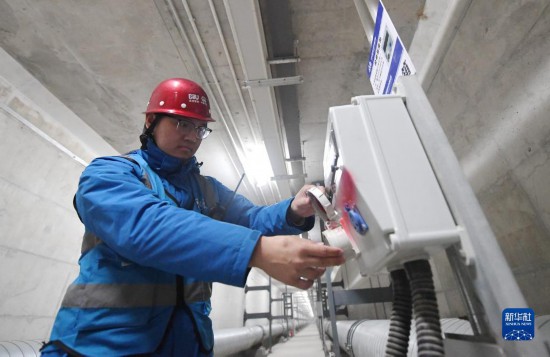 工作人員在雄安新區(qū)容東片區(qū)地下管廊調(diào)試物聯(lián)網(wǎng)設(shè)備(2022年3月30日攝)。新華社記者 朱旭東 攝