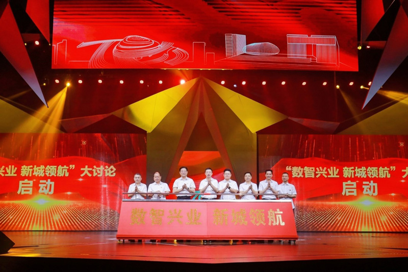 石橋街道經(jīng)合社數(shù)字經(jīng)濟(jì)產(chǎn)業(yè)紅盟成立大會(huì)暨“數(shù)智興業(yè)、新城領(lǐng)航”大討論啟動(dòng)儀式。石橋街道供圖