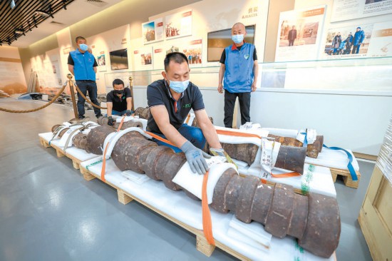 有了“腿”,神炮便“來(lái)去自如”了許多。之后,將用液壓拖車機(jī)械裝車,與館內(nèi)所有文物統(tǒng)一運(yùn)輸。