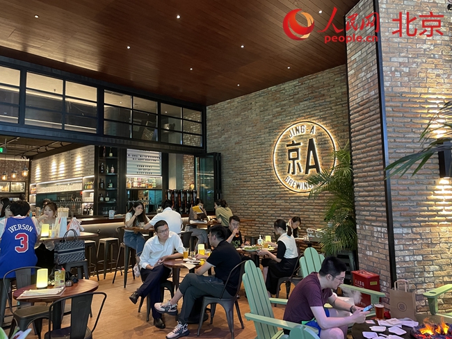 除了火鍋店,一家名為“京A Taproom”的美式精釀啤酒餐吧也熱鬧十足。美式工業(yè)風(fēng)的裝潢極具格調(diào),炸雞配啤酒的組合也頗有人氣。“這里的氛圍我很喜歡,小吃和啤酒也很對(duì)我的胃口,來(lái)這里能夠忘掉那些煩惱和壓力?!崩钆吭诠ぷ髁艘惶熘?,邀約了朋友一起來(lái)這家餐吧放松心情。