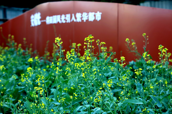 景觀于7月14日開始開放。在今年試種的基礎上,總結種植經(jīng)驗,計劃每年3月種植油菜花和粉黛亂子草,并運用一年生地被植物,組團種植、點狀分布進行綠化點綴,同時結合景墻、雕塑、常年生花鏡植物,維持廣場四季景色效果。