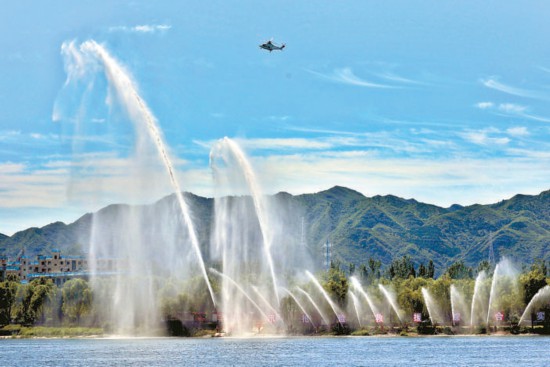 36支水槍同時出水,受災(zāi)區(qū)域的水位快速下降——“城市綜合排澇”展現(xiàn)了消防救援人員聯(lián)動排水集團(tuán)緊急排險的能力。 本報記者 白繼開攝