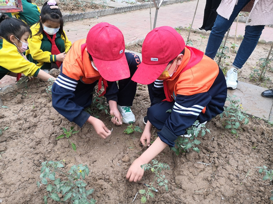 河北省威縣第五中學(xué)教育集團師生在勞動教育實踐基地移栽西紅柿植株。 趙國華攝