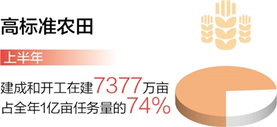 種子耕地農(nóng)機基礎(chǔ)進一步夯實,農(nóng)業(yè)綜合生產(chǎn)能力不斷提升。種業(yè)振興行動扎實推進。資源普查任務(wù)進度過半,已收集農(nóng)作物種質(zhì)資源11萬份、畜禽遺傳材料6萬份、水產(chǎn)遺傳材料5萬份。開展農(nóng)業(yè)關(guān)鍵核心技術(shù)攻關(guān),首次審定一批綠色、專用和耐鹽堿小麥品種。高標準農(nóng)田建設(shè)加快推進。上半年建成和開工在建高標準農(nóng)田7377萬畝,占全年1億畝任務(wù)量的74%。農(nóng)機裝備條件持續(xù)改善。推進機收減損,小麥機收損失率控制在2%以內(nèi)。