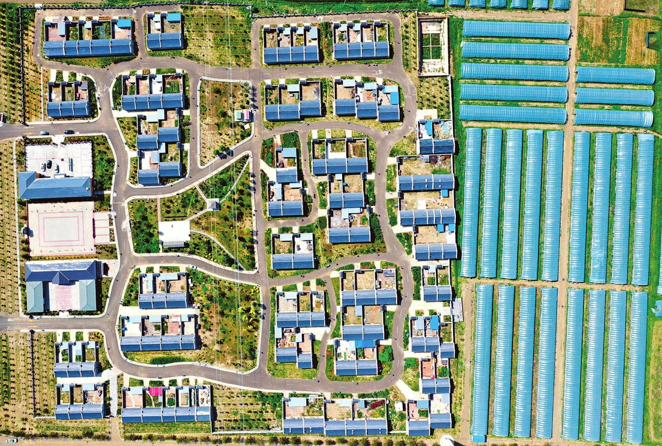 7月18日,俯瞰大同市陽(yáng)高縣花苑村,設(shè)施農(nóng)業(yè)基地與移民新居共同舒展開一幅鄉(xiāng)村振興的美麗畫卷。該村合理規(guī)劃、做大做強(qiáng)種植業(yè),村集體出資建大棚、與村民合作經(jīng)營(yíng),真正實(shí)現(xiàn)“搬得出、穩(wěn)得住、能致富”。(記者劉通 通訊員王中勛攝)