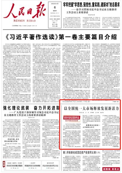 【人民日?qǐng)?bào)頭版關(guān)注湖南】以全國(guó)統(tǒng)一大市場(chǎng)釋放發(fā)展新活力