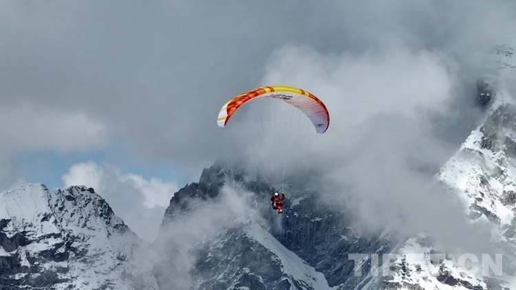 中國西藏網(wǎng)訊 5月18日,中國滑翔傘飛行員木子(李生濤)成功從珠穆朗瑪峰海拔8000米處用無動(dòng)力單人滑翔傘起飛,經(jīng)過20多分鐘的飛行,安全降落在海拔5400米的珠峰南坳大本營附近預(yù)定區(qū)域。