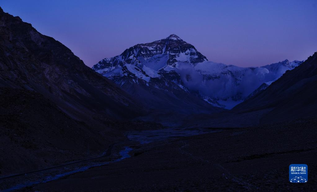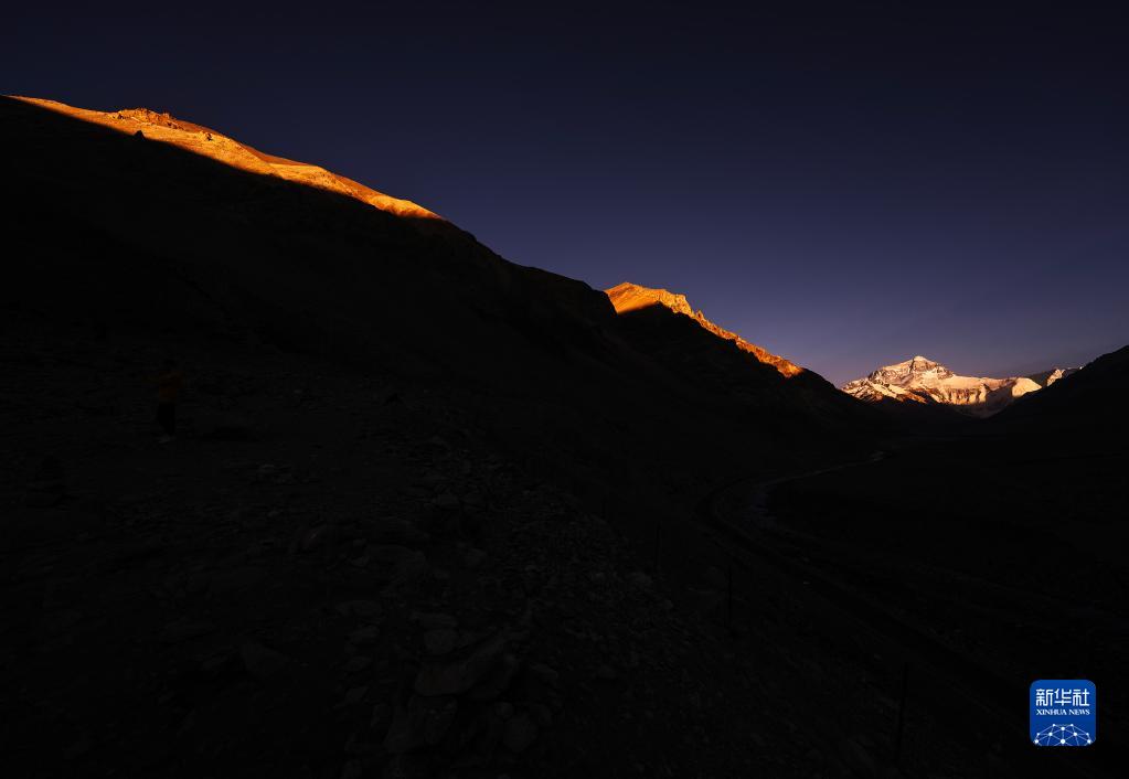 6月4日,最后一抹陽光即將從珠峰頂上消逝。新華社記者 費茂華 攝