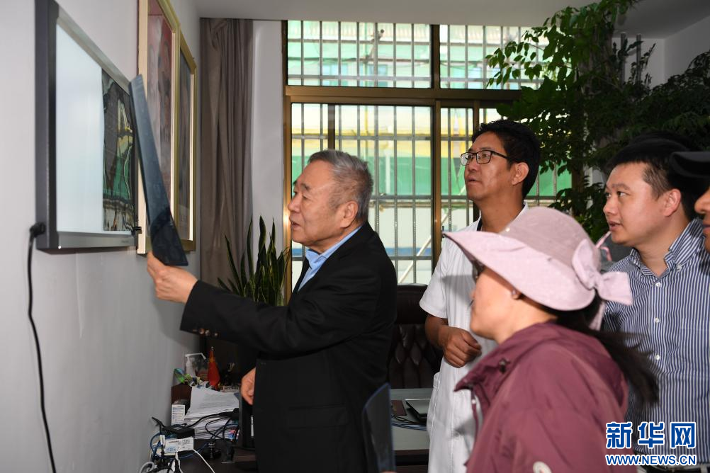 趙繼宗院士(左一)查看患者的CT片(8月10日攝)。新華社記者 張汝鋒 攝