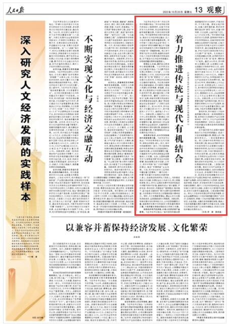 人民日?qǐng)?bào)|著力推進(jìn)傳統(tǒng)與現(xiàn)代有機(jī)結(jié)合