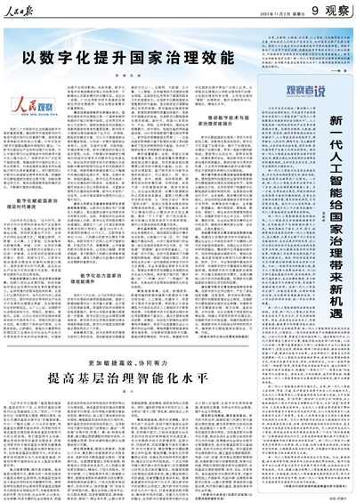 人民日報整版探討數(shù)字化如何賦能國家治理