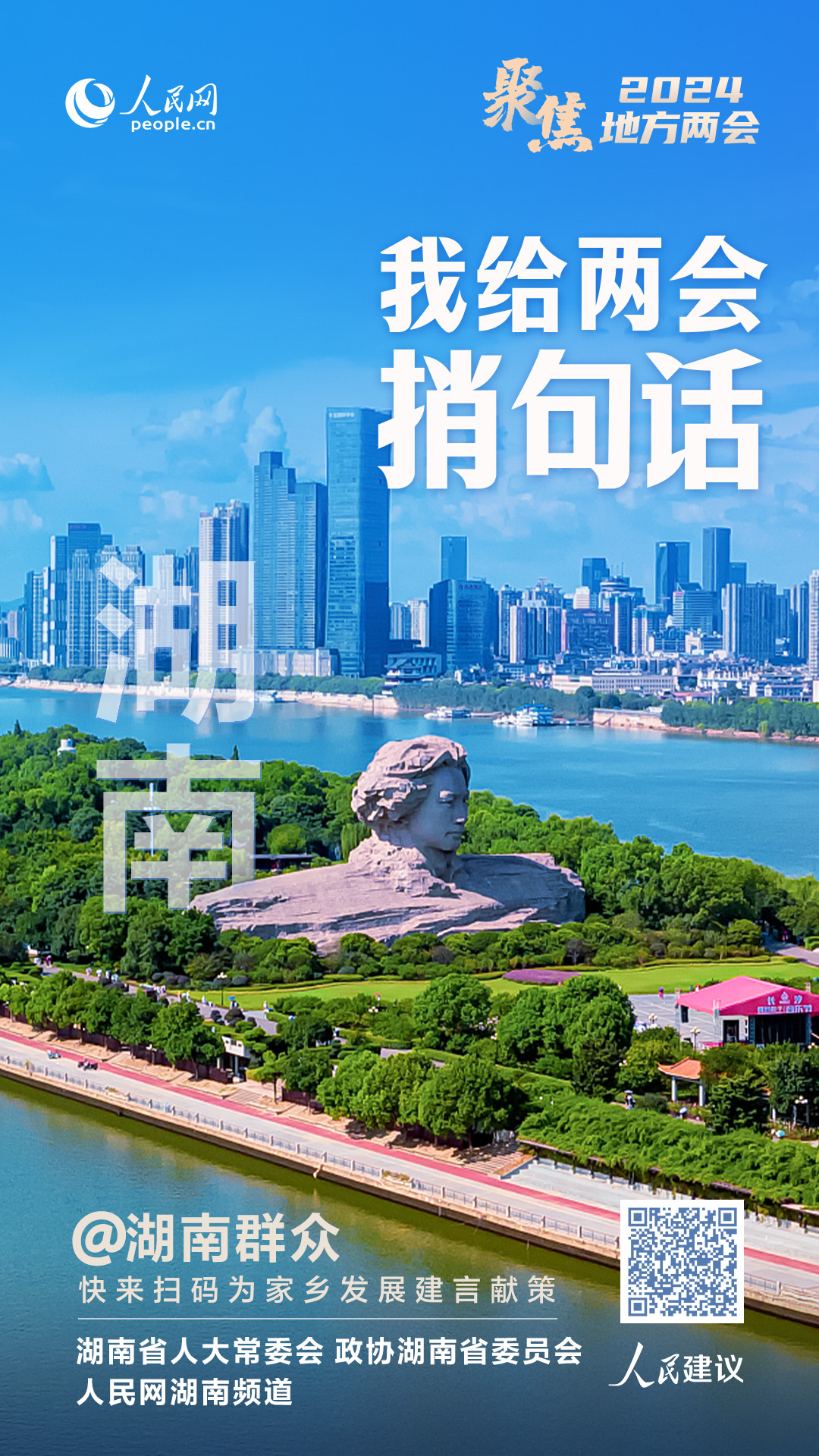 2024年1月23日,湖南省兩會召開。即日起,人民網(wǎng)聯(lián)合湖南人大常委會、政協(xié)湖南省委員會推出“我給湖南兩會捎句話”大型建言征集活動(簡稱“捎句話”活動),廣大網(wǎng)友可通過人民網(wǎng)“領(lǐng)導(dǎo)留言板”小程序、“人民網(wǎng)+”客戶端等渠道,為家鄉(xiāng)發(fā)展積極建言獻(xiàn)策。