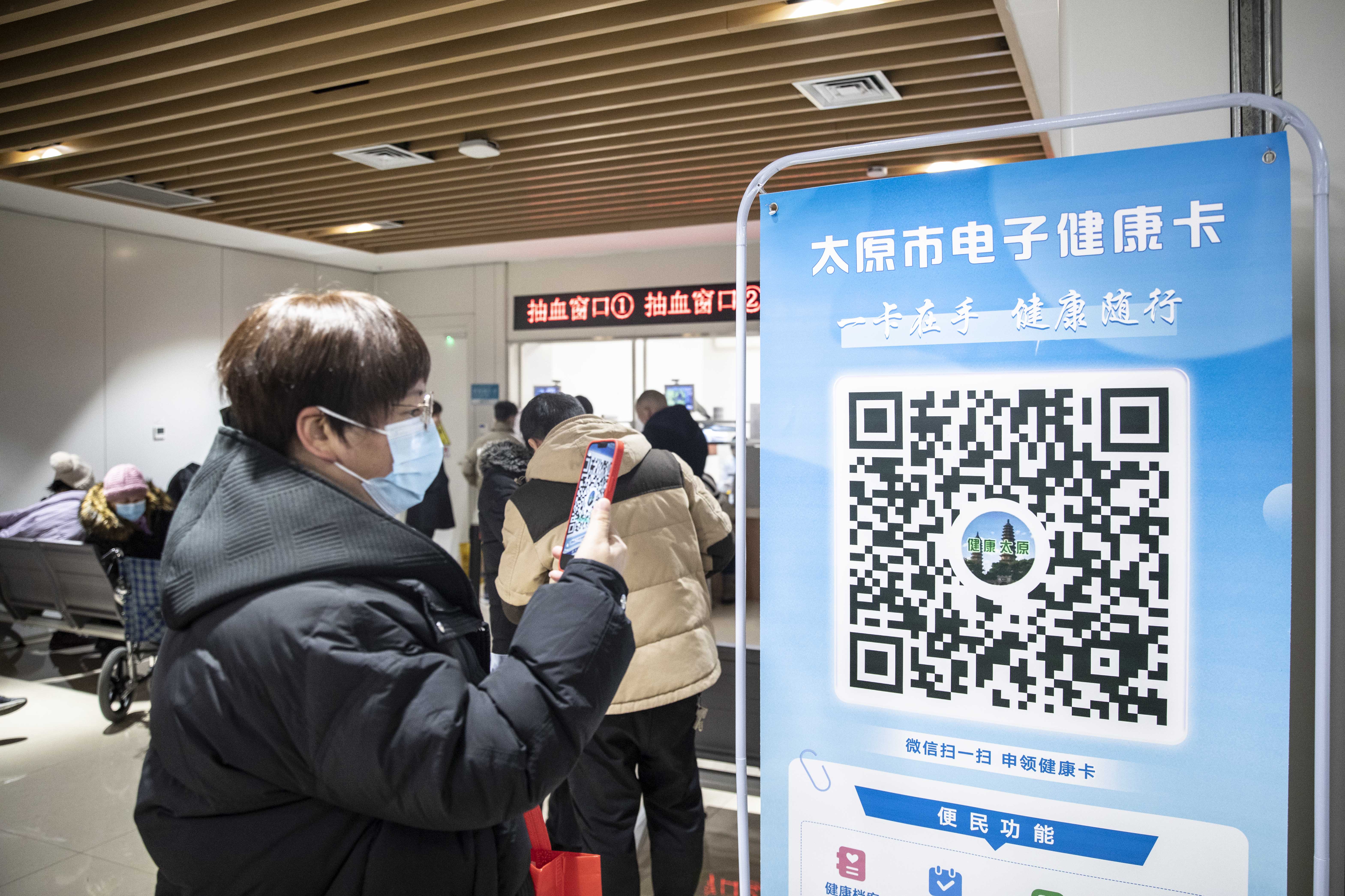 市民掃碼注冊(cè)太原市電子健康卡。人民網(wǎng)記者王帆攝